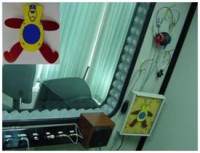 Es un sistema de ayuda para hacer Audiometría a los niños y está compuesto por un muñeco totalmente hecho en Aluminio y con pintura de aceite. La caja puede ser de lámina metálica o de acrílico. El control está hecho con un sistema electrónico para el movimiento del muñeco, al presionar un pulsador el comienza a moverse o brincar y luego se apaga automáticamente hasta presionar nuevamente el pulsador. El control de Este sistema contiene dos switch de perilla, un volumen y un pulsador.