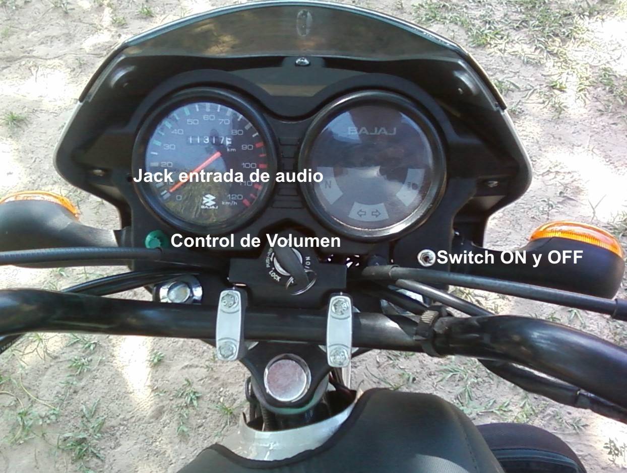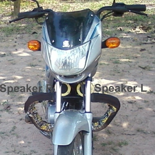 Estos son los parlantes grandes, los pequeños se pueden camuflar bajo el tablero del velocímetro, este Mini Amplificador es un sistema muy discreto y se puede lavar la moto normal.